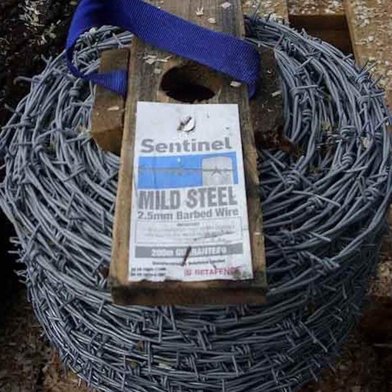Barbed wire is a type of fencing wire constructed with sharp edges or points arranged at intervals along the strand(s). It is used to construct inexpensive fences and is used atop walls surrounding secured property.