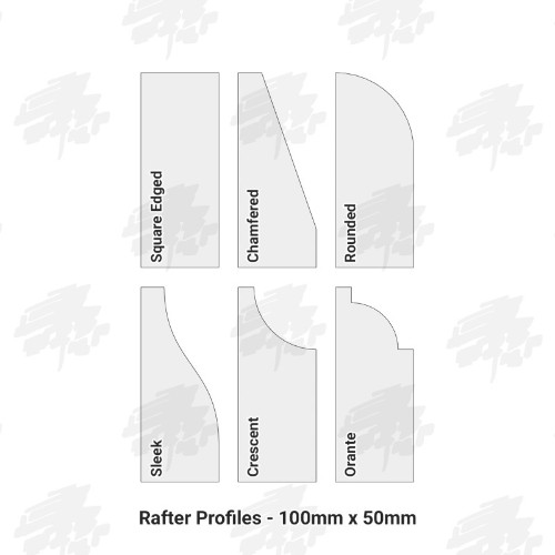 We also offer the option to pick an end style for your rafters/bearers. You can choose from one of the following to suit your own style: Square Edged, Chamfered, Rounded, Sleek, Crescent or Ornate - simply select the profile in the relevant dropdown.
