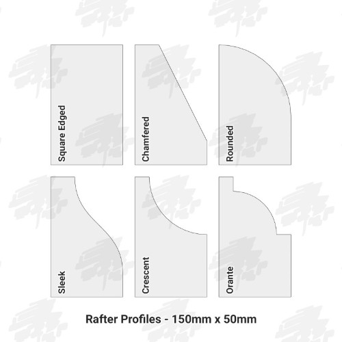 We also offer the option to pick an end style for your rafters/bearers. You can choose from one of the following to suit your own style: Square Edged, Chamfered, Rounded, Sleek, Crescent or Ornate.