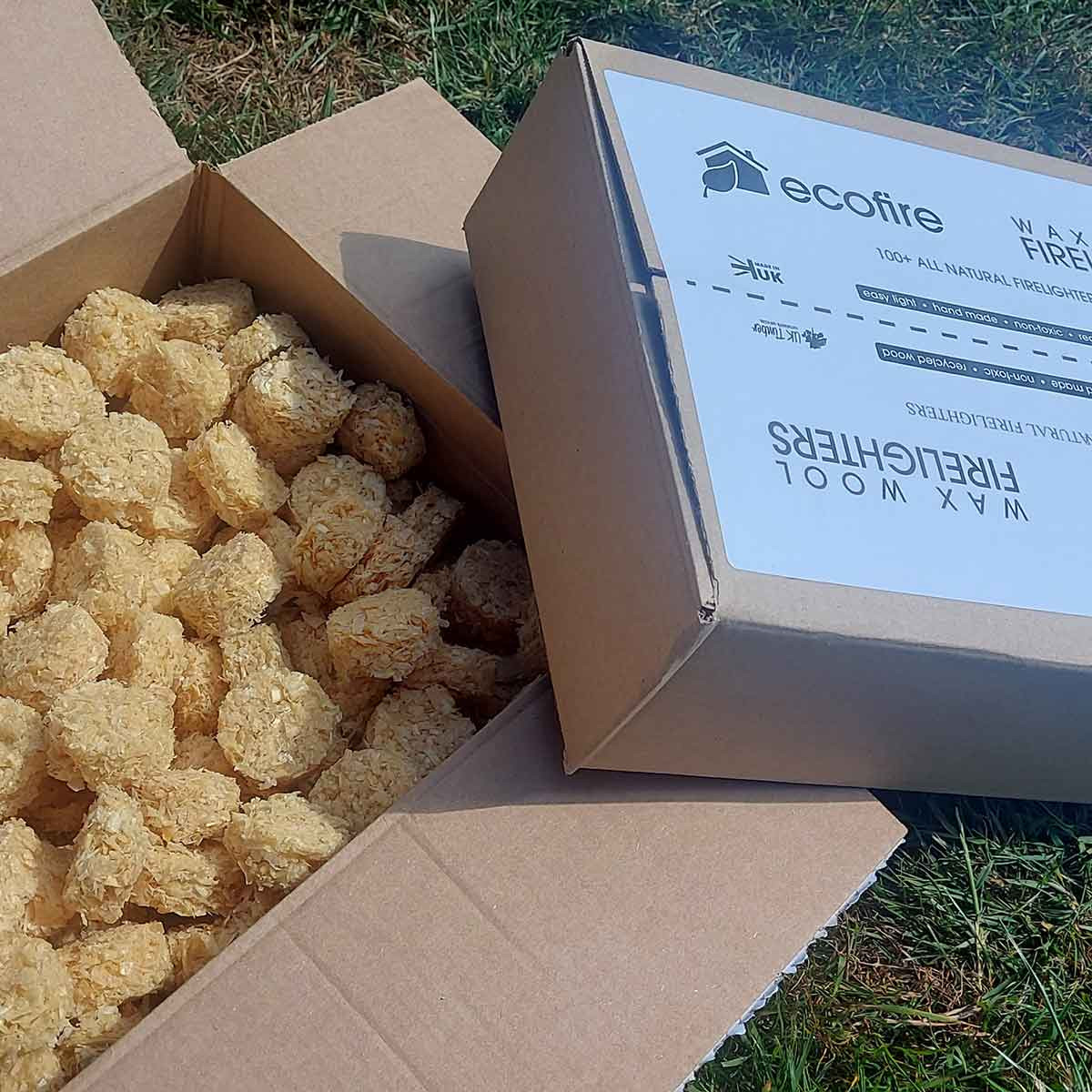 We are pleased to introduce our new Ecofire Wax Wool Firelighters, an ecofriendly, safe to use alternative to tranditional firelighters. Available in boxes of 100 and boxes of 200, these firelighters are perfect for open fires, BBQs, stoves, chimineas and much more.