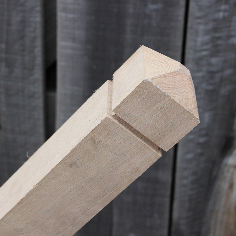 Solid European Oak Newels machined to a pyramid top offering a distinctive modern finish to your decking area.