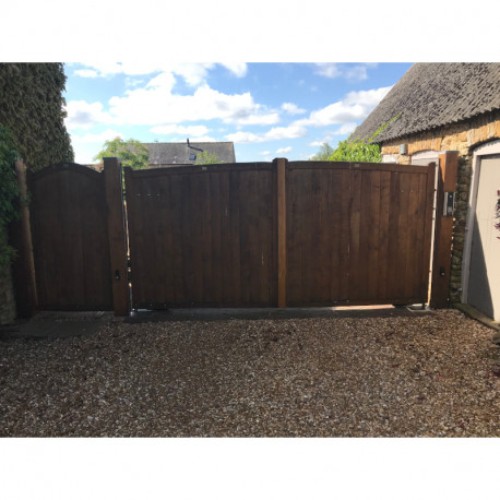 A stunning pair of British Larch/Douglas Fir Closeboard Curved Top Driveway Gates will provide an impressive entrance to any property.