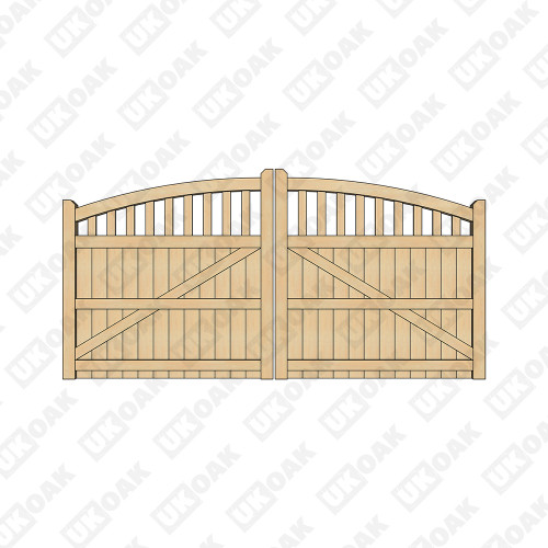 Select a width and then complete the required options to configure your Pair of Solid British Douglas Fir Curved Top Cottage Style Driveway Gates