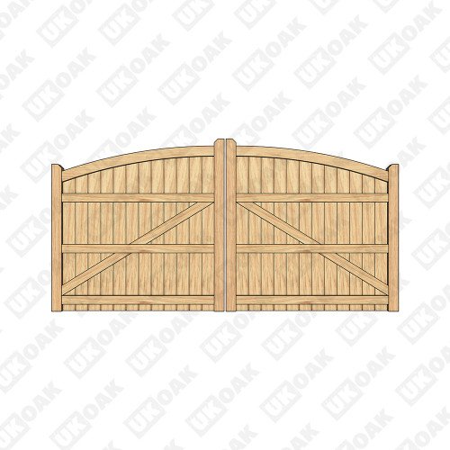 Select a width and then complete the required options to configure your Pair of Solid European Oak Curved Top Closeboard Driveway Gates