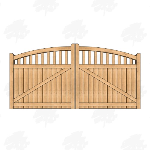 Select a width and then complete the required options to configure your Pair of Solid European Oak Curved Top Cottage Style Closeboard Driveway Gates