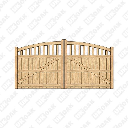 Select a width and then complete the required options to configure your Pair of Solid European Oak Curved Top Cottage Style Driveway Gates
