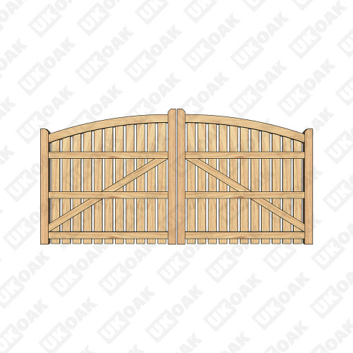 Select a width and then complete the required options to configure your Pair of Solid European Oak Curved Top Palisade Driveway Gates