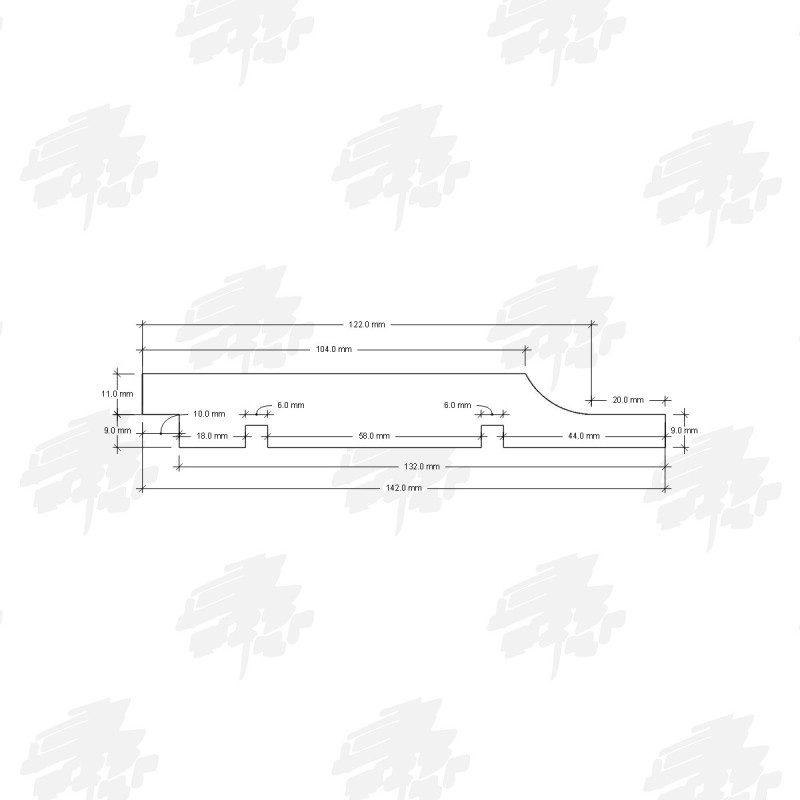 142mm x 22mm - The overall width is 142mm, with the visible face measuring 132mm