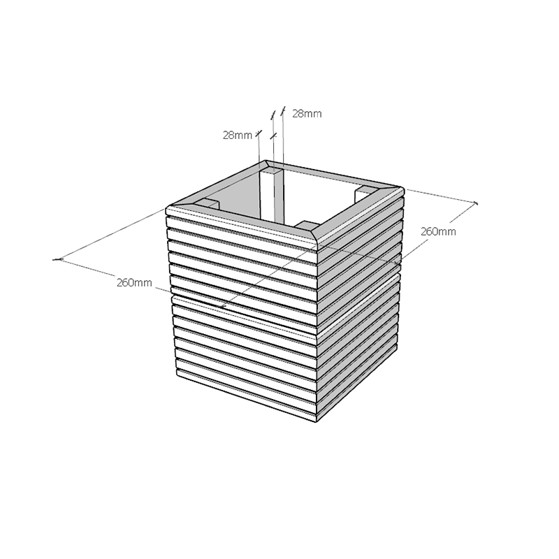 Contains three planters of decreasing size: 500mm x 500mm x 290mm, 380mm x 380mm x 290mm, 260mm x 260mm x 290mm.